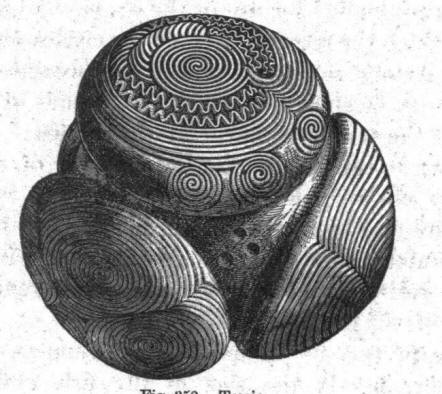 Слика из отворених извора Већина камења има исти пречник – 70 милиметара, са изузетком неколико већих, чији димензије достижу пречник од 114 милиметара. Количина избочина на камењу креће се од 4 до 33 на површини неки имају спиралне и дискоидне шаре. Ни мање занимљив камен пронађен је у Абердеенсхиреу, његов пречник око три центиметра (око осам центиметара). На њему три су утиснуте округле „капице“ спирални обрасци слични симболима. Направљено је између 2500 и 1900 година пре наше ере. Геометрија древних пет камење Асхмол музеја претходно је било у приватној колекцији Британски археолог, пионир древне минојске цивилизације Сир Јохн Еванс, који је веровао да би их се могло користити као гранате за старо бацање оружја. Међутим јесте објашњење не делује тачно, јер на камењу нема каменчића оштећења која би се нужно догодила да су кориштена током војних сукоба. Да, и сам облик камења, њихова сложеност производња сугерира да се толико трудите, правећи шкољке, бесмислено.