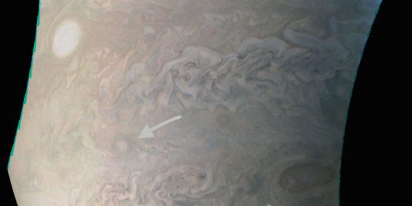Ова фотографија је снимљена 11. децембра помоћу камере ЈуноЦам постављене на свемирској летелици. Растојање до површине гасног гиганта у време истраживања било је око 64.000 км. Ово је Јуноин трећи блиски лет у Јупитеровој орбити од јула 2016. године, када је сонда управо стигла на одредиште.